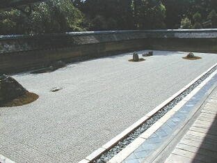 次に向かった所が竜安寺。砂利を水の流れに見立てた「枯山水」の庭園はあまりにも有名で