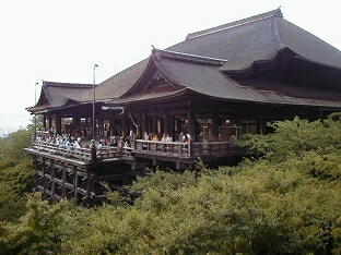 ら程近い清水寺へと足を延ばします。延暦24年(805)坂上田村麻呂によって開かれたというこ の寺も言わずと知れた人気スポットです。断崖上の”舞台”の造りは、簡素ですが貫禄充分で した。