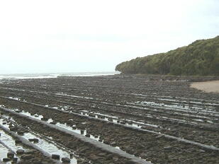 く手加減をしてくれません。またしてもTシャツまで浸水。。。都城からは宮崎自動車道を通って 宮崎市へ。そして宮崎ICにて、R220へ入り、青島に到着。島の周囲を「鬼の洗濯板」という縞 模様の波状岩が取り巻いています。