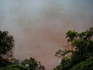 車道を走って別府市へ。言わずと知れた我が国屈指の温泉の街。雨はもう、だいぶ小降りに なっていました。観光名所の「地獄巡り」を楽しみます。 ○坊主地獄…ブクブクと湧き出す熱泥からこの名称が。ここだけ別料金。