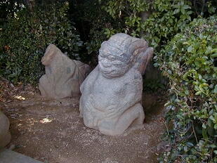 と走りつないで明日香村へ。いわずと知れた古代史の宝庫。まず最初に向かった所が高松塚 古墳。極彩色の壁画がこの古墳の特徴です。8世紀初頭のものとされ、埋葬者は刑部(おさか べ)親王との説が有力だそうです。また、付近には猿石、亀石といった謎の石造物も数多く点 在していました。