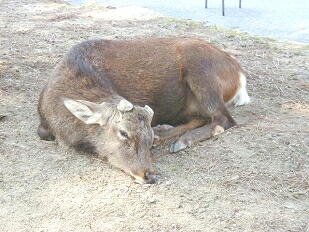 りの鮮やかな神殿が目を引きます。また、この春日大社を中心とする奈良公園一帯は、”あ の”宮島同様、野生の鹿たちの生息地。しかし、宮島と決定的に違うのは、ほとんどの雄鹿の 角が切り取られてしまっているというところです。お陰で全く怖くありませんでした。(^^;;