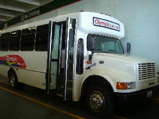 たオリンピックバスラインズの「ポートエンジェルス」行きのバスを待ちます。しばらくしてバスが 到着しましたが、キャンピングカーを少し大きくしたような感じの小さな車両でした。