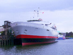 内の名所を巡る観光客も数多いとのことです。 しかし筆者は一人、海沿いに建つM.V.コーホーフェリーの国際フェリーターミナルに向かいま