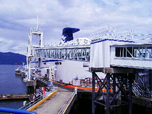 リーに乗り込みます。この船も先日乗ったM.V.コーホーフェリー同様、大きいためか揺れは殆 どありません。船はバウンダリー海峡に浮かぶ島々の間を縫うように進んでいきます。そして 約1時間半の後、トゥワッセン港に到着。すばやく下船し、バンクーバー方面行きのバスに乗り 込みました。
